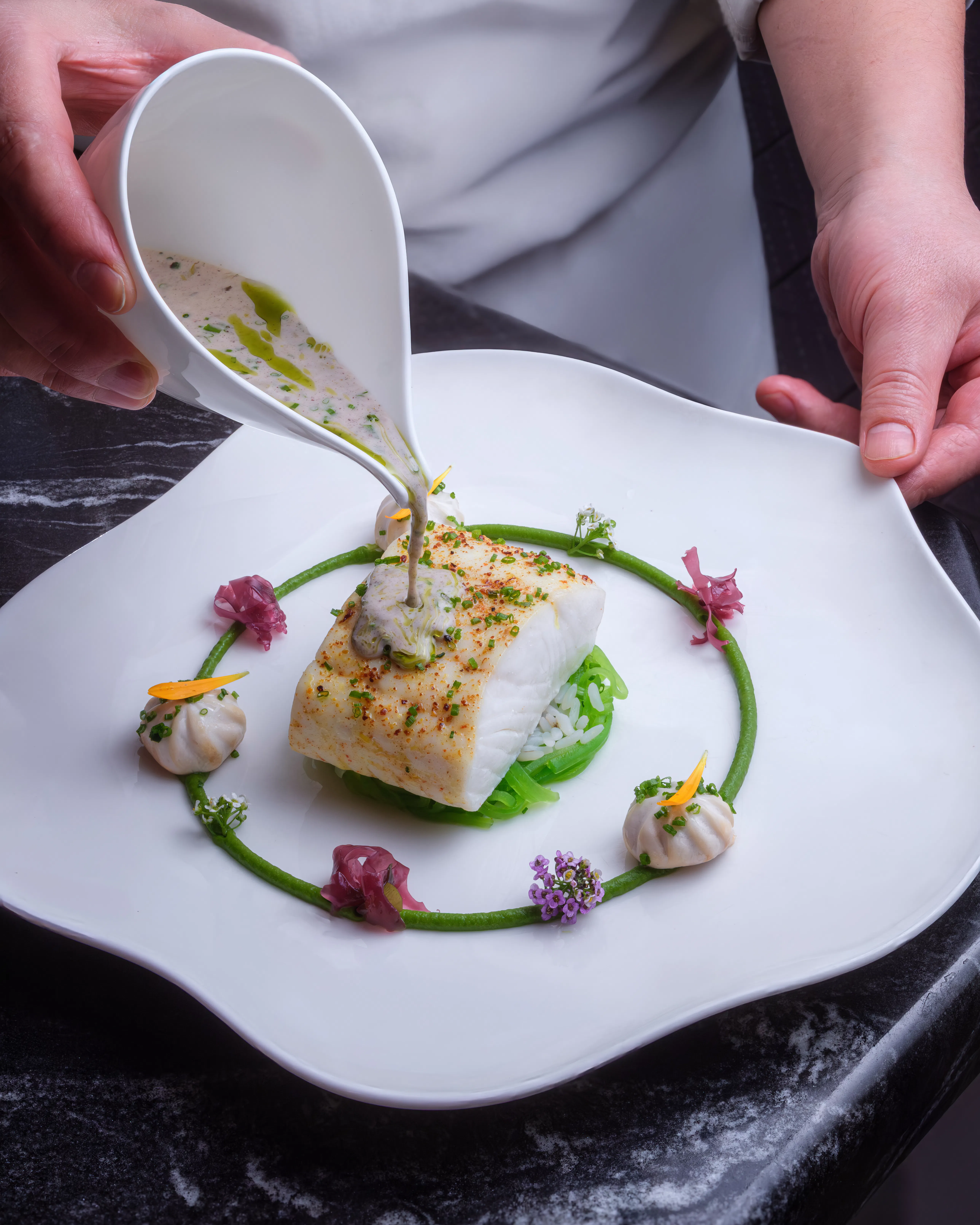 WITH A FOCUS ON SEASONALITY AND LOCALLY SOURCED INGREDIENTS FROM BOTH LAND AND SEA, ”TERRE ET MER", LE PAVILLON OFFERS AN INNOVATIVE MENU SHOWCASING VEGETABLE-FORWARD AND SEAFOOD-CENTRIC CUISINE.